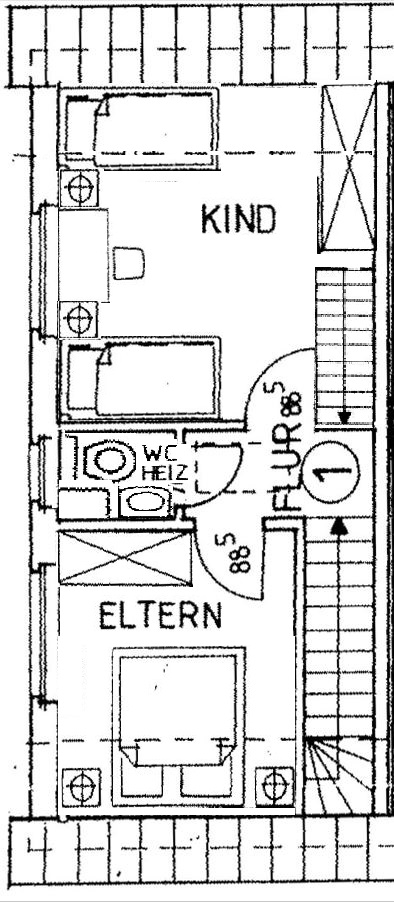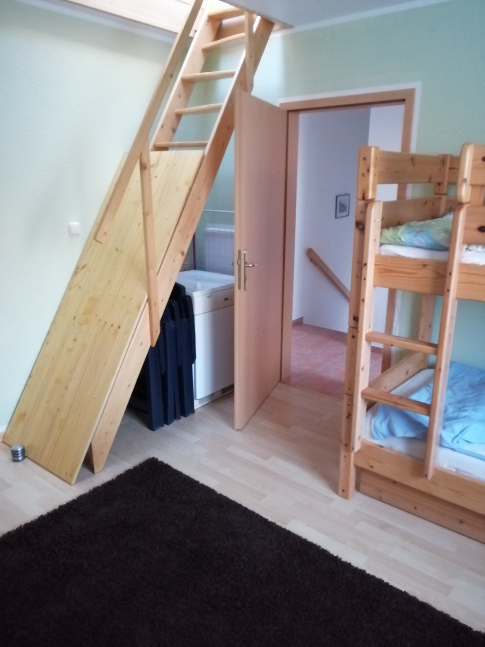 Die Treppe in diesem Zimmer führt zur Dachspitze, die nicht mit zur Vermietung gehört.